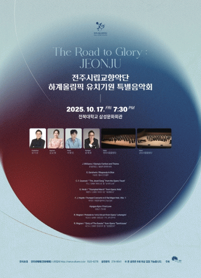 ÀüÁֽø³±³Çâ¾Ç´ÜÀº ¿À´Â 17ÀÏ ¿ÀÈÄ 7½Ã 30ºÐ, ÀüºÏ´ëÇб³ »ï¼º¹®Èȸ°ü¿¡¼ ½Ã¹Î°ú Áö¿ª»çȸ°¡ ÇÔ²² ¿Ã¸²ÇÈ À¯Ä¡ÀÇ ¶æÀ» ³ª´©´Â Ưº°À½¾Çȸ ¡®The Road to Glory: Jeonju¡¯¸¦ °³ÃÖÇÑ´Ù.
