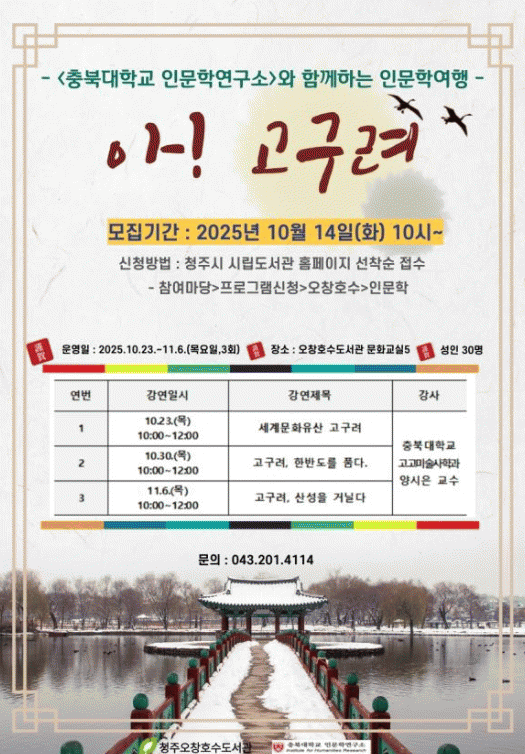 [HKSÇàÁ¤¹æ¼Û]ûÁÖ¿Àâȣ¼öµµ¼°üÀº ÃæºÏ´ëÇб³ Àι®Çבּ¸¼Ò¿Í Çù·ÂÇØ ûÁֽùÎÀÇ Àι® ¼Ò¾ç ÁõÁøÀ» À§ÇÑ Àι®ÇÐ °Á ¡®Àι®ÇÐ ¿©Çà : ¾Æ! °í±¸·Á¡¯¸¦ ¿À´Â 23ÀϺÎÅÍ ¿î¿µÇÑ´Ù.